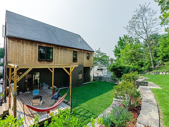 Luxury & contemporary style welcome you to this lovely, architect designed home. Beautiful stacked stone walls and granite steps lead through the terraced front garden to the entry. Inside, the foyer/mudroom has a stair leading to the open concept main fl on the right and another stair leading to the lower level family room. The main level is bright and spacious, w/LR and DR flowing into sleek kitchen w/stone/quartz counters, island w/pendants, ss appliances, vent hood and sliders to lg deck and inviting, pro landscpd yd. Cozy sitting area and ½ bath complete the 1st fl. Upstairs, 2nd fl offers a primary bdrm w/double closets and ensuite tiled bath w/ double sinks; 2 roomy bdrms; full bath and separate laundry rm off hall. Top fl has painting studio w/skylight, full bathroom, lg bedroom. Thru the LL fam rm is a second mudroom that opens to the garage and a utility rm. Two zone C/A, wide driveway, lovely neighborhood.