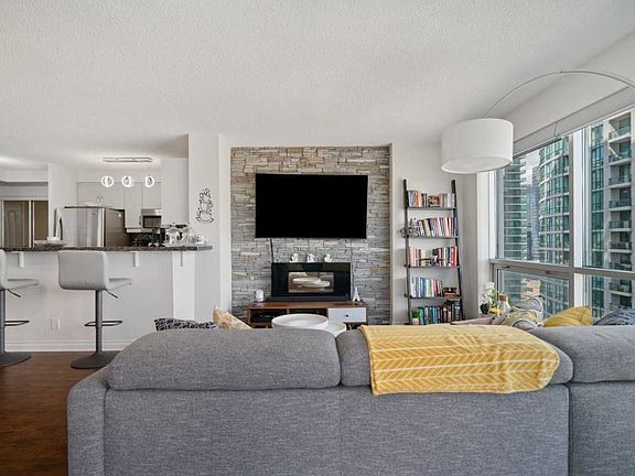 Corner Suite At 10 Yonge St. With An Incredible 900+ Sq Ft. Downtown And Waterfront Views. Prime Location Across The Lake, Walking Distance To The Financial/Entertainment Districts, Union, And Hwy! This 1+1 Is Very Spacious, Bright & Open Concept. Very Large Den (Can Be Used As A 2nd Bedroom) W/Glass Sliding Doors. Accent Brick Walls, Electric Fireplace, Large Kitchen W/ Granite Countertops. Utilities Inc Hydro + Cable! Must See 30,000+ Sw Ft Of Amenities!