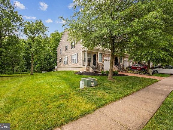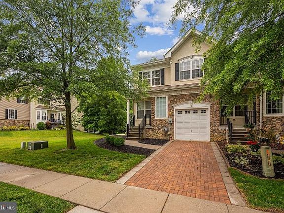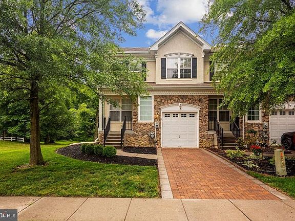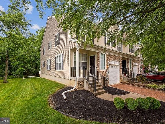 Aren't you glad you waited for an end unit? Are you ready for what gorgeous looks like? Here it is! Located on a Premium lot backing to lush green trees, this Magnificent End Unit Townhouse features 3 Bedrooms, 2.5 baths with a Finished Basement and a 1 car Garage. Outstanding curb appeal with the stone accent front and paver hardscape driveway. Gleaming Hardwood Floors greet you in the open concept living room dining room adorned with handsome crown molding , shadow boxes, and crisp fresh paint color palette. The dining room has a new light fixture. The half bath has a pedestal sink. The breathtaking 2-story Family Room lets in plenty of natural sunlight and has a cozy gas fireplace and view of the woods. You will love the kitchen boasting granite counters, coordinating tile backsplash, double sink, recessed lighting, stainless steel appliances including a cook top and new double oven, new microwave. The peninsula is perfect for stools, and there is also a breakfast area that leads to sliding doors and a deck with a peaceful private view. Upstairs has all hardwood floors in all 3 bedrooms and the hallway. The Primary Bedroom is generous and it includes 2 closets including a walk-in. The Primary Bath has a double vanity, relaxing soaking tub, and shower. 2 additional bedrooms have ample closet space. The Full Bath has ceramic tile floor and tub shower. The convenient upper floor laundry completes this level and has new engineered wood laminate flooring for a clean look. The added bonus is the Finished Basement featuring new engineered wood laminate flooring. The ultimate man cave, theater room, playroom, or whatever your needs suggest! The unfinished space is currently being used as a home gym and has a sump pump for your peace of mind and all your storage needs. Economical and programmable Nest thermostat. Super popular location close to Rt. 295, NJ PA Turnpike, and Joint military bases. Come take a look before you miss out.
