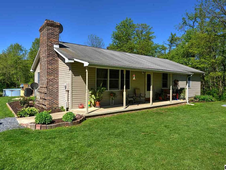 Looking for privacy? You found it in this three bedroom 2.5 bath ranch home plus 30x52 three-bay detached garage with additional living space on 3.7 acres surrounded by trees! Kitchen with granite countertops, newer appliances, dining area with hardwood floors and opens to a 15x34 deck and refreshing above-ground pool. Spacious living room with cozy wood fireplace, master bedroom with private full bath and first floor laundry. Beautifully finished lower level with new carpet, ceramic tile and has family room, game room area with wood stove, office and sliders to rear patio for entertaining.