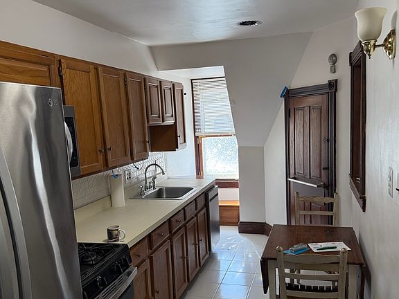LOFT APARTMENT TOTALLY REHABBED, 3rd floor, 650 sq. ft. (plus attic storage) with Victorian woodwork, thermostat-controlled iron radiators, lots of windows, central air, and washer & dryer in utility room. New carpeting in living room and bedroom. New tiled kitchen with all-new gas range, refrigerator, microwave oven and dishwasher. Merchantville is a safe, prosperous small town having historic homes, public parks, a Rails-to-Trails path, recreation center, and a commercial downtown with eateries, craft breweries, everything from banks, barber shops and churches to chocolates, cafes and fine wine. Written Landlord/Tenant Lease Agreement in Plain-English signed by all parties. Landlord pays for water, sewer and trash services. Landlord is responsible for repairs, maintenance and improvements. Tenant pays for personal-use electricity, gas, telephone, internet and cable services. Tenant is responsible for keeping the apartment and premises clean and for putting own trash at the curb weekly. All Parties are responsible for maintaining a safe, peaceful environment on and around the premises for the enjoyment of occupants and neighbors. The initial lease starts at signing and with payment of the security deposit and runs for the course of a year but not less without a financial penalty. The tenancy can renew thereafter in compliance with the NJ Truth In Renting Act (1975) and within the conditions of the lease. Termination of the lease requires 60 days notice starting on the first of the next month.