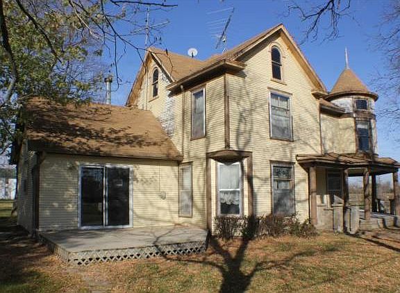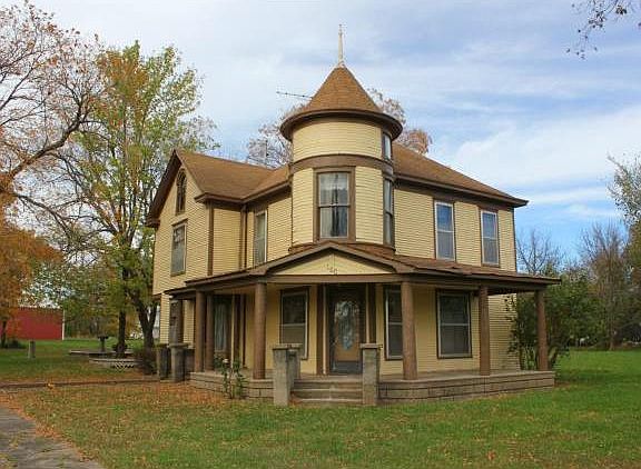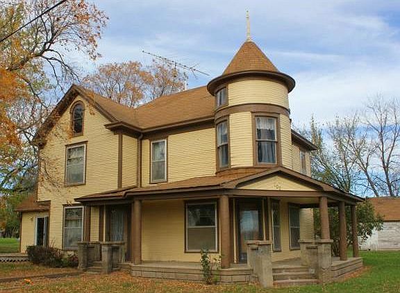 Historic H.L. Reiber house with fresh exterior paint. Beautiful walnut staircase. Round room off the bedroom would be a perfect spot to relax and read a book! New linoleum in kitchen and laundry room. New tub surround. New carpet in bath. New Pex plumbing. Newer sliding glass door. Antiqued picture frame molding. Stained glass. You'll enjoy the large wrap around porch and the large deck. 24' X 20' detached 2-car garage. Unique built-in fish pond. Must see! Priced under county appraisal!
