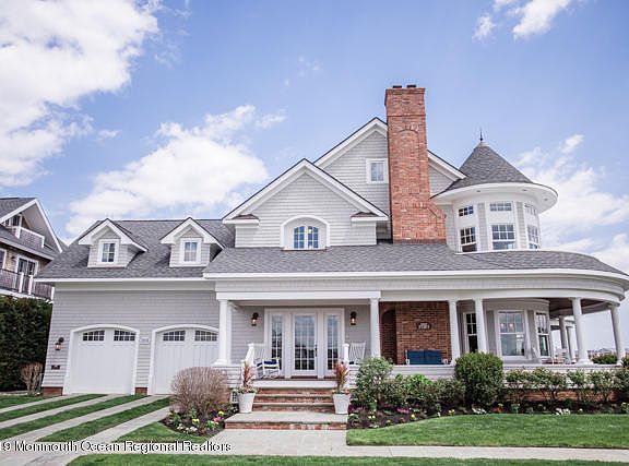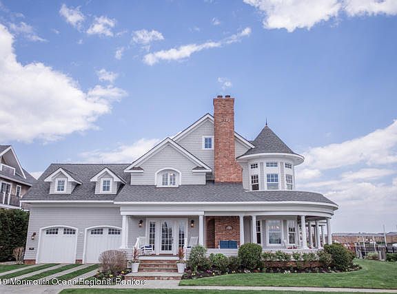 Enjoy water views from every angle of the generously sized wrap around porch of this beautiful custom built waterfront home as you watch the boats sail by on the Shark River. Tranquility and comfort abound in both design and detail. Entertain guests in all seasons in the large gourmet kitchen or enjoy a swim in the custom gunite pool with water feature! Private, oversized lot. Large master suite, guest suite and three additional guest bedrooms & 4.5 baths, balconies on every level, 3 fireplaces, and an extensive list of custom details throughout. Take your boat out fishing right from your 100 foot bulk head & dock with 2 boat lifts! This is a truly special first time offering just two blocks from the spectacular Avon beaches!