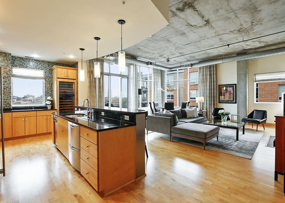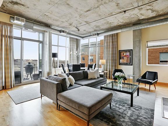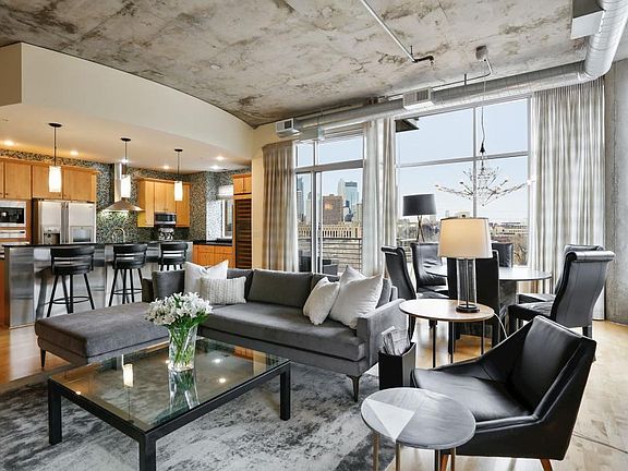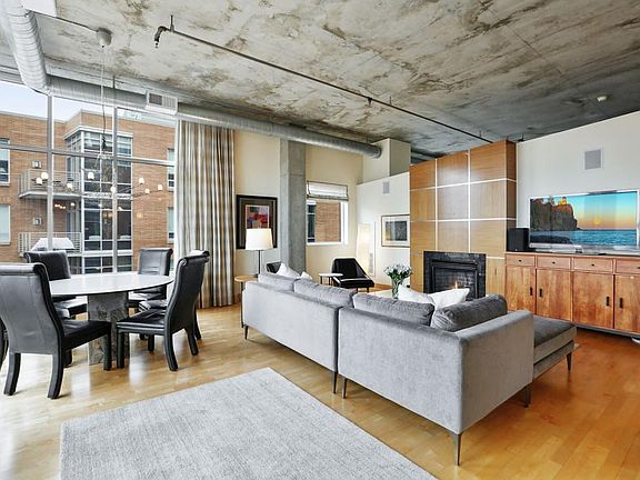 Spectacular urban loft living with high ceilings, exposed duct work & concrete. Unique 3 bedroom unit featuring walls of windows with views of downtown Minneapolis, the Twins stadium and over North Loop. Highlights of the kitchen include high end appliances and large capacity wine fridge creating a setting ready for entertaining. Anchoring the open living space is the gas fireplace with artistic wood surround. The master bedroom is spacious and neutral filled with natural light. The media room is the escape for movie night or curling up with a book. The Village Lofts is a sophisticated community with the building offering a stunning roof top deck for gathering friends. The neighborhood of Nicollet Island- East Bank is vibrant with walkability to shops and restaurants.