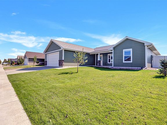 Built in 2018 by K.I.B. Homes! Nice open floor plan with vaulted ceiling, big open kitchen, gas fireplace in living room, large master suite with private bathroom, tile walk-in shower, double sink vanity & walk-in closet. Covered back porch. Garage is finished (insulated & sheet rocked). Great curb appeal with stone accents and cute front porch. Call Jim Dea at 406 231 1830 or your real estate professional for a showing.