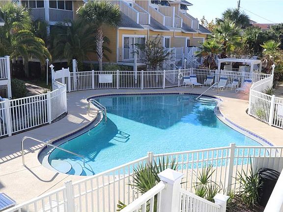 This is one of the nicest townhouses in Mexico Beach. You will really feel like you are at the beach with this tropical coastal design of Oceanside Village. These are some of the largest 2BR's in Mexico Beach with over 1,900 total Sq Ft and have a very spacious feeling layout and privacy with the living/kitchen/dining area and each bedroom on 3 separate floors. There are multiple decks, a covered garage, storage area and a great community pool a few steps off the back deck. Sold fully furnished. Great end unit and across the street from the Mexico Beach Marina.