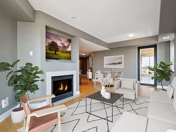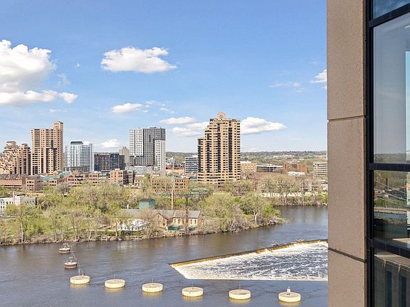 Overlook the Mississippi River with summer sunsets and River views from this West and River facing, Lewis plan, 2BR & 2BA condo. Many great features and upgrades include gas fireplace; large kitchen with center island, under-cabinet lighting updates, stainless appliances with newer dishwasher; upgraded electrical; newer Washer/Dryer; fresh paint in bedrooms and large primary ensuite bath with double vanity and walk-in-closet. 2nd bedroom is spacious with large windows, perfect for home office. Hall ¾ bath is great for guests. Enjoy the fresh air from your inset balcony, which also has gas hookup for BBQ grill. Storage locker on 4th floor! 40-bottle wine locker. Two parking spaces on P1. Enjoy the renovated Common Areas, large gym, yoga room & 5th Floor Club Room. ½ block to skyway. Plus, the Carlyle offers 1GB+ internet, cable, 24-hr front desk attendant, outdoor pool deck w/grill & fire pit, 3 guest suites, and more!