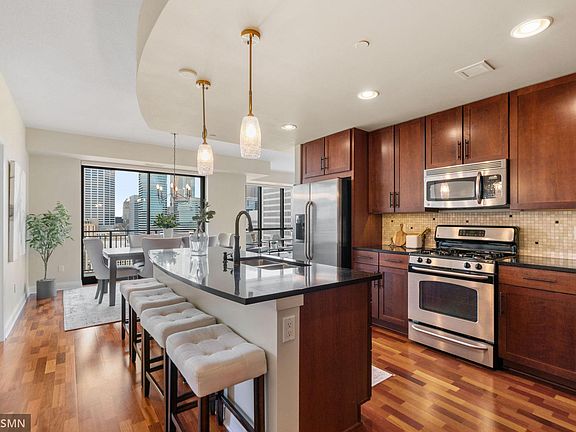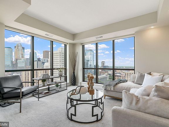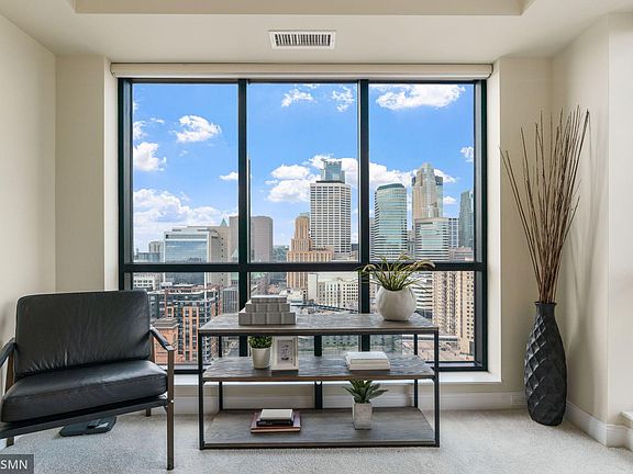 Nestled in the heart of Minneapolis’ prestigious Mill District, the Carlyle stands as a pillar or luxury living. This 21st-floor corner unit offers panoramic southern views of the city skyline as well as the Mississippi River, all this is complemented by the breathtaking sunsets you’ll see from your living room. Floor to ceiling windows illuminate this open floor plan with plenty of natural light. This spacious one bedroom plus den offers a great work from home space. The Carlyle's renowned amenities won’t disappoint, from a wine tasting room and newly remodeled party rooms, to a year round hot tub, sauna, and rooftop summer pool. Skyway access is just half a block away ensuring seamless connections to prime shops, restaurants, and the Guthrie Theater. Riverfront parks and trails are just out your front door. The building organizes events that foster connection among residents, creating a welcoming and vibrant community. Schedule a tour and make this exceptional condo your home!