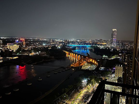 Breathtaking Panoramic Views of Dntn & river. Two units built into one 3100 fin sq ft with open floor plan. This unit touts home theater, Library,(2 more br)mstr guest suite, .Dramatic 3 sided view of South Views Facing river & New Vikes !