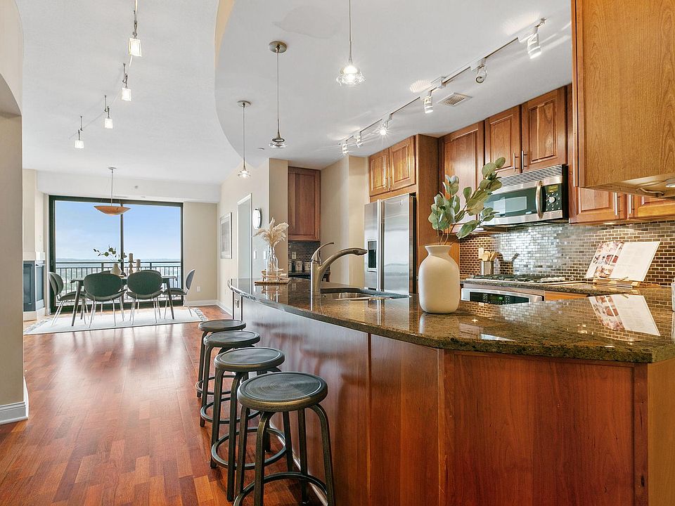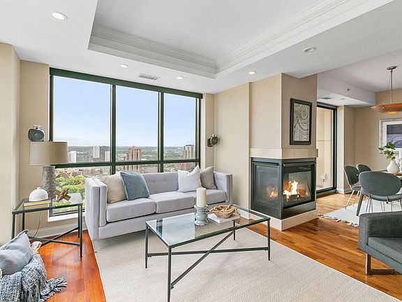 Live in the sky in this 29th floor condo at The Carlyle offering panoramic views overlooking the Mississippi River! This 2 bedroom/2 bathroom floorplan was designed with hosting in mind-provides effortless flow between spaces and features kitchen with large breakfast bar, spacious dining area, and living room with double-sided gas fireplace. Floor to ceiling windows showcase miles of views and abundance of natural light. Take in both sunrises and sunsets from your private balcony. Enjoy the conveniences of living at The Carlyle-all common areas have recently undergone extensive renovation including state-of-the-art fitness center, outdoor pool and hot tub, grilling area, guest suite, concierge service, wine room, and multiple entertaining spaces. Walk to the Mill District or North Loop to enjoy your favorite restaurants, boutiques and bars, see a show at the Guthrie, swing by the Farmer's Market, or take in a sporting event at US Bank Stadium, Target Center or Target Field!