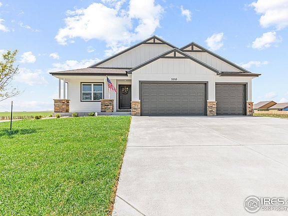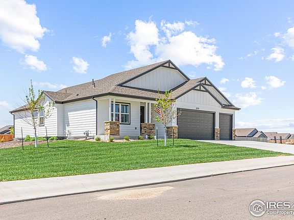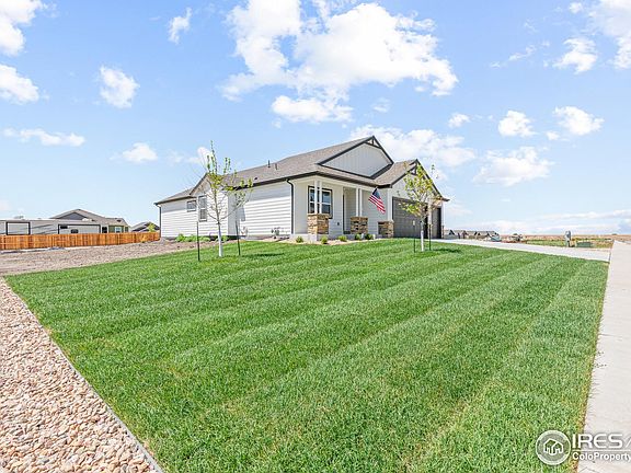 The largest lot in the subdivision offering space to add a workshop, a chicken coop, an orchard and all of the above! The Poudre model highlights premier finishes in the base price. Covered front porch and covered oversized patio lends themselves to convenient entertaining. Luxurious laminate, upgraded carpet and pad, and tile flooring throughout the main floor. The kitchen opens into the living spaces and includes stainless steel range/oven, dishwasher, microwave. The centerpiece of the living room is the natural stone surround fireplace. The basement has 9' walls offering the opportunity for more future living space and expansion. 96% efficient furnace, 50 gal. hot water heater and passive radon. Front yard has sprinkler system and sod