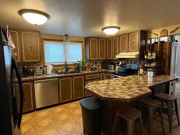 Corner lot, mature trees, 1.5 story with basement, fenced and irrigated yard, great covered deck for relaxing, warm fireplace and woodstove inside for winter...you need to come see this one! Upstairs bath has been fully remodeled. It also has a metal roof and gas heat, and the basement is finished. This one is a great home you need to see!