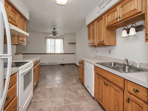 AFFORDABLE HOUSING OPTION - Welcome to this charming ground level condo unit boasting 1,380 sq ft of comfortable living space. This southeast-facing residence offers an abundance of natural light throughout the day. Inside this corner unit you will discover a thoughtfully designed layout featuring a spacious living room and dining area. The heart of the home showcases solid oak cabinets in the kitchen, providing ample storage space for cooking/baking essentials, complemented by a generous pantry for all your storage needs. Three generous sized bedroom allows room for guests or hobbies. With one full bath and a convenient half bath, this home ensures practicality and ease for everyday living. Meticulously maintained, this residence exudes a sense of warmth and care. Experience the epitome of comfort and functionality in this well-cared-for condo unit, where maintenance free living can be enjoyed. HOA fees include water, exterior maintenance, building insurance, lawn care, snow removal, and trash! Outside, a 14'x24' detached garage offers secure parking and additional storage space, completing this desirable package. Make it your home today!