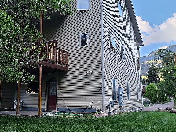 Nestled up against the Uncompahgre River this end unit town home is South facing for incredible views of the mountains and maximum sun. Very well designed two bedroom, 2 1/2 bath with an open floor plan and a built in office space. There is a gas log fireplace in the living room and an elevator. Large windows and sky lights make this home feel bright, open and airy. On the end of a dead end street for minimal traffic. The dog park is directly across the street. The HOA includes your exterior insurance, all grounds maintenance including snow removal.