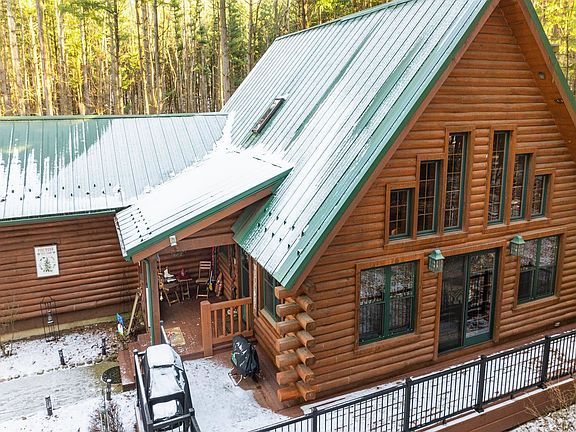Nestled in a serene, wooded setting is Tall Pine Lodge. This charming Log Cabin offers 2 bedroom and 2 full baths for a tranquil retreat from the bustle of the everyday life. Crafted from natural timber, the cabin blends rustic charm with modern comfort. Its open floor plan features a cozy open space with the magical stone fireplace for cozy evenings. The modern kitchen has an island for seating and storage. Upstairs in the loft offers a full master suite with a jetted tub and walk in closet, filled with natural sunlight and incredible views. Downstairs offers another bedroom and full bath, with laundry next to that. Attached garage makes bringing groceries is a breeze. Step outside to enjoy your morning coffee and gazing at the deer wondering thru the woods. A true gem with association access to Pine Canyon Lake for kayaking, canoeing, or just floating in the sun.