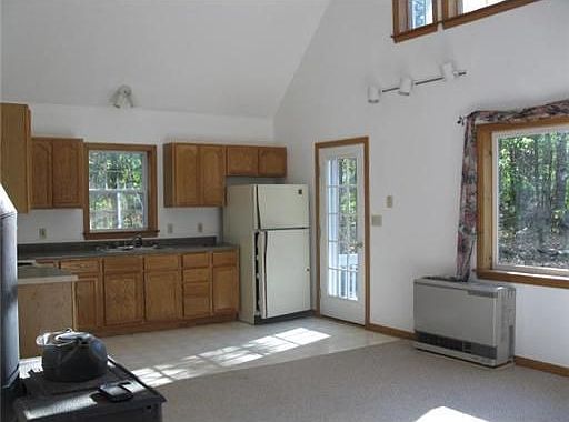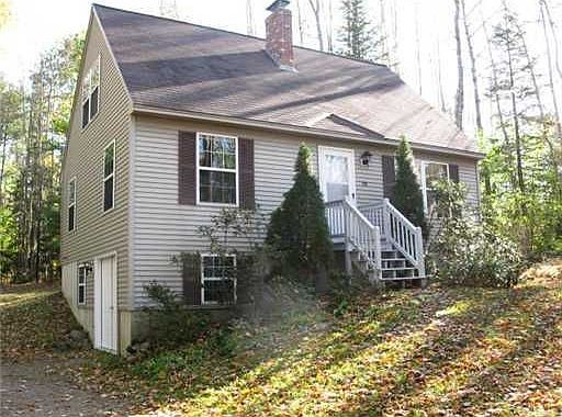 This 3 bedroom Cape is nestled into the woods for privacy on 7 acres. Livingroom/kitchen area with cathedral ceiling and brick hearth & woodstove, full walkout basement.