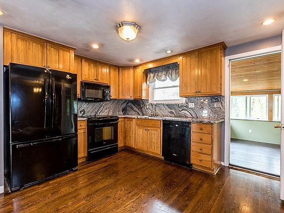 Beautiful four bedroom raised ranch offering updated kitchen with granite countertops and gorgeous sunroom off back of home . Large family room with fireplace , recessed lighting and hardwood floors throughout . Energy efficient gas heat and central air . Finished basement includes fourth bedroom ,office , and family room with an additional wood burning fireplace. Nice deck overlooking golf course . Home is situated on a quiet cul-de-sac setting . Minutes away from highways and shopping amenities !