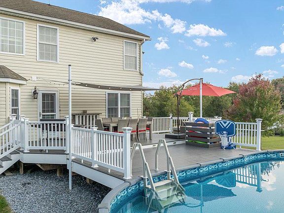 Why wait for overpriced new construction when you can own this beautifully updated home now? Offering both modern amenities and a spacious 2 acre lot, this property delivers the perfect balance of outdoor beauty and indoor comfort—with the bonus of high-speed internet! Step onto the inviting front porch and take in the views. Inside, the main level showcases a stunningly renovated and expanded kitchen, where no expense was spared. You’ll also find a large, dedicated office, a gorgeous half bath, a cozy living room, and a charming breakfast room featuring a coffee bar and beverage cooler. Upstairs, you'll be greeted by another beautifully renovated full bathroom, a spacious primary suite, and three additional bedrooms. The finished basement includes a convenient kitchenette, a full bathroom, two flex rooms, and extra unfinished storage space. Outside, the entertainment options continue with a large composite deck, a new above-ground pool (installed in 2022), and a separate patio with a built-in fire pit. Love baseball? There's even a batting cage! Additional features include zoned HVAC and a full water treatment system for ultimate comfort.