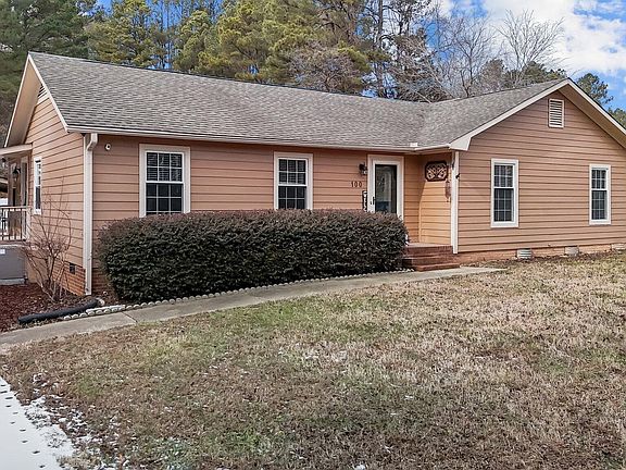 Welcome home to one-story living at this charming home ~ Nestled on just over a ½-acre level lot in a quaint cul-de-sac, this home features a versatile layout with two options for a primary bedroom. The second bathroom, complete with a step-in shower and jet tub, is accessible from both the hallway and the back bedroom. The larger primary bedroom offers a split floor plan concept, having its own wing with ensuite bathroom. Original hardwood floors grace much of the main area and independent foyer; LVP upgrades in kitchen, laundry, main primary bathroom and flex room—no carpet here! The kitchen boasts with granite countertops, upgraded lighting, additional buffet storage, and LVP flooring, creating a space that's both stylish and functional. Enjoy the convenience of a large mudroom/laundry area, a detached 24.5 X 24.5 ft 2-car garage with an attached shed roof, and an extra driveway pad for additional parking. Additional features include, two-inch blinds throughout the home, an additional flex-room, an additional wired shed, and both a rear deck and cozy side deck, inviting you to relax or entertain outdoors. Seven miles to Duke University and hospitals. Convenient to bustling downtown Durham, 15-501, 85 and Chapel Hill.