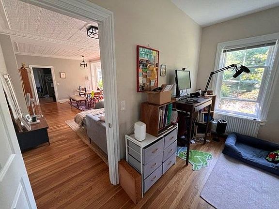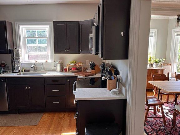 First floor 3 bedroom, stamped tin ceiling in living room, high ceilings, great sunlight, off street parking, laundry in unit. Recently remodeled with quartz counters counter tops, stainless appliances, hardwood floors through out, lockable storage in basement. walk to 3 beaches. Landlord takes care of grass and snow removal. Great shared yard and screened porch. New windows, insulation, high efficiency heat. AC window units provided renter is responsible for all utilities