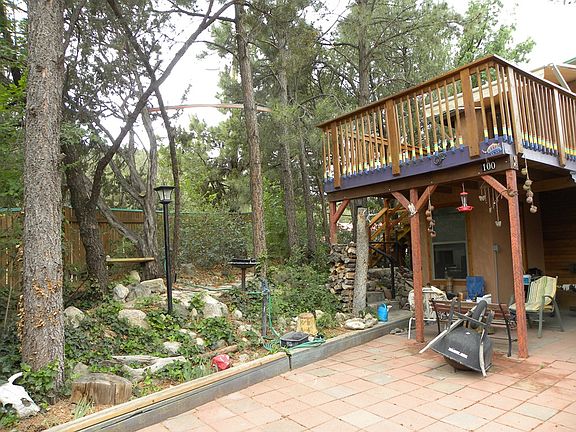Cool corner lot cabin with level entry and easy access. Nice cabiny feel. Remodeled deck with SunSetter awning. Totally enclosed courtyard with brick pavers. Comfortable primary residence or rental. Free standing wood stove will keep you cozy on the colder days. Green house for your personal garden. Landscaped in the front and fully fenced.