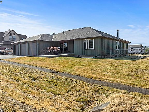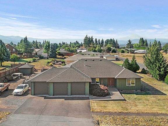 This single level open floorplan home is in a great location. Nice large open kitchen with nice size eating bar. The property is located on a dead end street. The home boasts both Mt. Hood and Columbia River views. With 4 beds and 2 baths this home would be perfect for working from home or just if you need extra room. Large three car garage and nice level fenced yard with garden area and garden shed. Room for an RV and just tons of parking.