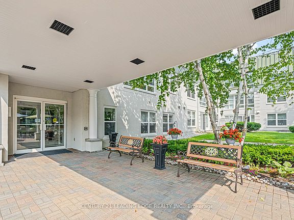 Look no further! This 1040 square ft. updated Laurel Model is move in ready and waiting for its new owner. Wyndham Gardens is an age 55+ lifelease building that offers a vibrant community environment. Renovated throughout this unit features an open concept living/dining room with laminate floors & crown moulding. Large picture windows overlooking the front courtyard let in an abundance of natural light. The eat-in kitchen has tile floors & backsplash, pot lights and stone counters. Primary bedroom has a walk-in closet leading to the semi-ensuite bath. The second bedroom has sliding doors leading to the solarium. There is convenient ensuite laundry and lots of storage. Enjoy local transit at your doorstep and the GO train is just steps away. Walk to all the quaint shops & eateries on Main St.