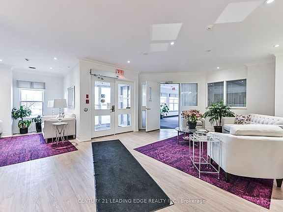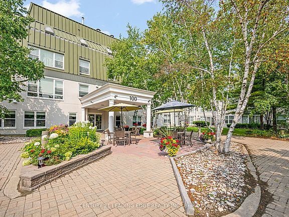 One of the larger units in this age 55+ lifelease building, and the only one of its kind. With 5 exterior windows and a skylight there is no shortage of natural light. The original layout was modified to add extra space and an ensuite in the primary bedroom. Spacious entry hallway has a walk-in storage cupboard and large coat closet. Open concept living/dining room features laminate floors and crown moulding. The den would make an ideal tv room, office or even double as a second bedroom, it also has a walk in storage cupboard with built-in shelving. Your primary bedroom has lots of space for a cozy reading nook and has closet with sliding doors and a convenient 2 pc. ensuite. Enjoy the scenic views from your private balcony. The picturesque grounds feature sitting areas overlooking the front gardens and garden plots for those with "green thumbs" Local transit on site and just a short walk to the GO train, Main St. and Hwy 7. Everything at your doorstep.