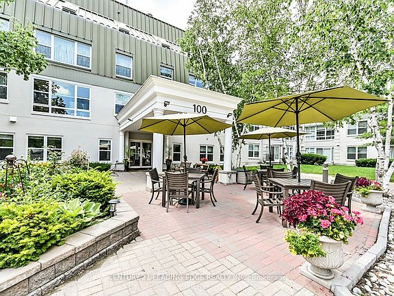 Rarely offered this 917sq. ft. Bluebell models is one of the larger one bedroom suites in Wyndham Gardens age 55+ lifelease building. Enter through a spacious hallway with large coat closet. Neutral decor, plush broadloom and California shutters throughout. The kitchen has lots of counter and cabinets as well as a walk-in pantry/storage cupboard and even room for a small breakfast table and chairs. Open plan living/dining room has large picture windows, crown moulding and a pass through into the kitchen. A welcoming light filled primary bedroom has lots of windows and a wall-to-wall closet with sliding doors. The solarium area could easily double as a guest room or even a home office/reading room. Your private patio is a great space to plant your own little garden oasis. This vibrant seniors community has a welcoming front patio area with tables and chairs, garden plots for the residents, games/activity room, hair salon, & more. Leave your car at home, local transit on site, steps to the GO train and a short walk to Main streets shops and cafe's.