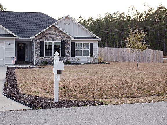 Sellers are willing to work with buyers agent. Well-maintained Sydes 'Vienna A' Open, Split 3BR 2BA Floor Plan on a Spacious Open Corner Lot. Carpets Cleaned, Landscape Edged with Stone & Mulch, 220v Circuit in Garage, & Separate Outlet Wired for Fridge. Untouched by Hurricane Florence. Not 10 Min. to Base, Avoiding Congested Hwy. 70 by Using Gate on 101. NO CITY TAXES. Within 1 Mi. of Fire Dept. Home features include: Electric fireplace, storage at front entrance, quiet family cul de sac, ceiling fans in every bedroom as well as living room, great natural light and all around family home! Do not want to miss this home! Please contact Tyler Williams