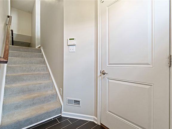 Former model home in the desirable Longvue plan in Ross Township. This three bedroom two and a half bath end unit is loaded with upgrades and move-in ready! A tiled entry greets you as you come through the front door. Neutral carpeting guides you upstairs to the main living area. An abundance of natural light flows from the windows on three sides of the home. The kitchen has a tile backsplash, white cabinets, stainless steel appliances, and granite counters. The spacious dining area is accompanied by an island with seating for two, creating a comfortable entertaining space. The back door leads out to a patio to enjoy the warm summer nights. Upstairs, the primary bedroom boasts a tray ceiling, a walk-in closet, and an en suite with a double bowl vanity, tiled walk-in shower, and tub. Two more spacious bedrooms, a full bath and laundyr complete the second floor. A finished game room is a perfect game room, office space or exercise room. Located just minutes from McKnight Road and 279!