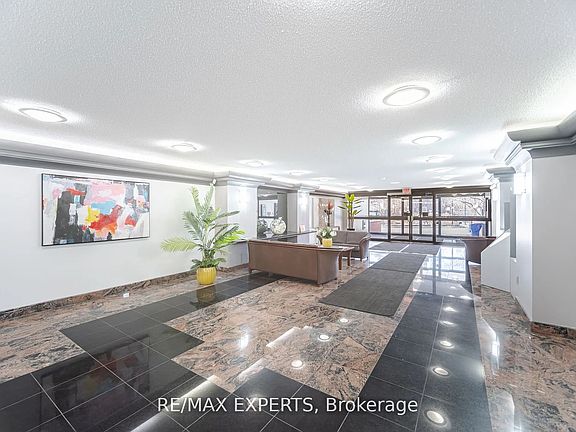 Have you ever imagined living in the Market Lane, in Woodbridge - Here's Your Chance! Get into the heart of Downtown Woodbridge--Convenience Meets Excellent Walking Location! Be within a short distance of Cataldi grocery shopping, pharmacy, banks, walk-in clinic and shops and restaurants. Go to Big Cannoli meet your friends for coffee & a cannoli, best in town! Very unique layout of 2 bedrooms 2 bath with 1066 square feet of living space and a south facing balcony. New tasteful laminate and renovated 2nd washroom with marble custom shower. All newer stainless steel appliances (Refrigerator can be moved to coffee station where it originally was if need be). Very bright sun filled natural light in the unit. Generous Primary Bedroom with solarium and giant walk in closet with storage shelves closets (2). The storage space in this home is plenty! Kitchen has a great potential and is nicely sized. Recent building updates new elevators, renovated swimming pool, painted exterior, fire panel, lobby--A Must See!
