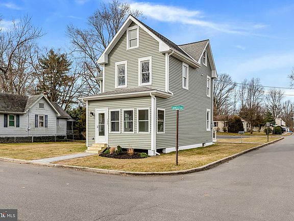 LOCATION! LOCATION! LOCATION! Beautifully renovated 4 bedroom, 2 FULL Bath SINGLE family home tucked away on a quiet street in historic Mt. Holly! Large, airy and brite downstairs offers formal living room + formal dining room...leading to the gorgeous NEW kitchen which features: raised panel white cabinetry w/soft close drawers, granite countertops, undermount sink, island/breakfast bar, pendant lights, recessed lighting, BRAND NEW Stainless Steel Appliances, decorative tile backsplash. Convenient MAIN FLOOR bedroom/office/flex space + MAIN FLOOR full bath + MAIN FLOOR laundry/mudroom. 2 bedrooms on the second-floor feature new carpeting + ceiling fans. Spalike main bathroom is roomy with newer tub & surround, ceramic tile floors, new toilet, new double sink vanity, recessed lighting. Then walk up to the 3rd floor which is a LARGE bedroom with an additional sitting area. Cute covered front porch is ready for your rocking chairs and the Summer breeze + large deck out back. Corner lot goes street to street. New asphalt driveway can accommodate 4 cars. NEW Vinyl Siding. Newer HVAC and hot water heater. Newer Roof. Upgraded/Replacement Windows. New Electrical Panel/Box. Close to major roads, schools, Joint Base MDL, Mt. Holly Town Center!