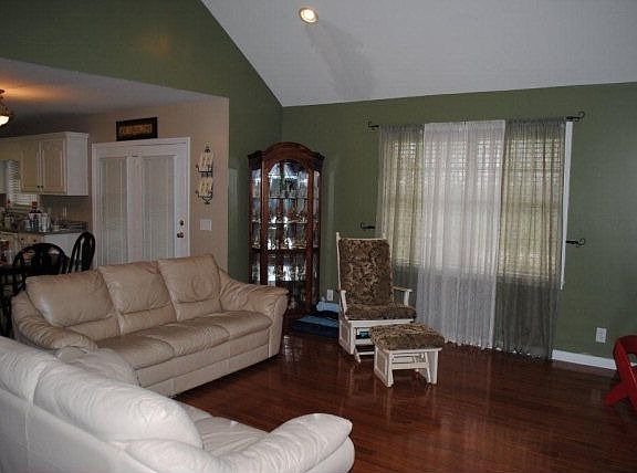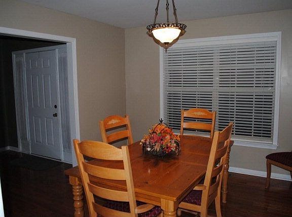 ONE LEVEL, 3 SIDED BRICK RANCH 3 BR, 2 BA, all kitchen appliances stay, hardwood and tile, carpet in bedrooms, master bath sep. tub/shower, double vanity, cathedral ceiling. Extra storage in 2-car garage. Great closets. Privacy fenced backyard.