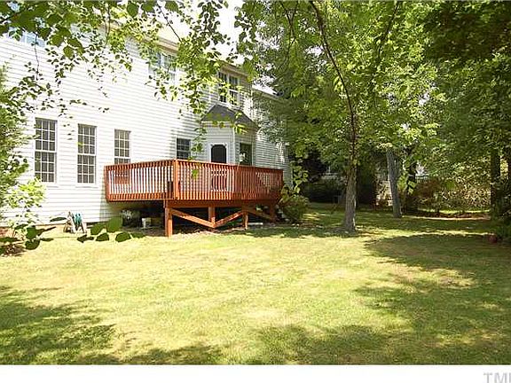 Great home in quiet community in Cary. Features 4 Br. + Bonus room. Two Story Foyer, Formal Living and dining Room, 9 Ft Ceiling in first floor, Extensive crown molding, chair rail, wainscotting. Hardwood flrs in foyer, kitchen and dining. Bright family room with gas log fireplace. Cath.Ceilings in master suite & bath w/whirpool tub. Nice Yard with large deck overlooks wooded lot
