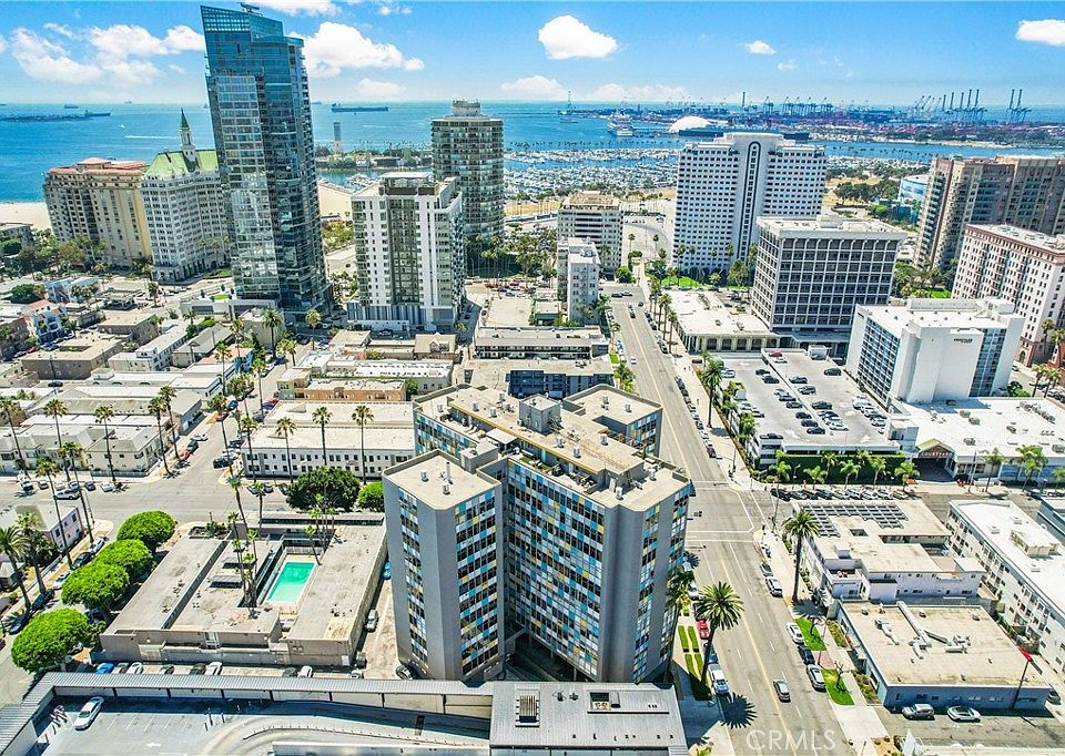 Embrace the Southern California lifestyle in this remodeled 2-bedroom, 1-bathroom corner condo, where coastal charm meets contemporary design. Expansive windows in every room flood the space with natural light, framing panoramic vistas of Long Beach and Downtown Los Angeles, creating a serene backdrop for everyday living. The open-concept living space has been upgraded with new luxury vinyl flooring and baseboards, fresh paint, and modern light fixtures. The kitchen is equipped with brand-new cabinetry, stone countertops and a spacious sink, while the bathroom is updated with a new vanity, toilet, and medicine cabinet. The secured-entry building offers a refreshing community pool, perfect for enjoying the sunny California weather. With the beach, restaurants, art galleries, boutiques, and entertainment just steps away, you’ll feel right at home in this vibrant neighborhood. BONUS: Oil and mineral rights INCLUDED, offering a unique long-term value, making this condo not just a home, but a smart investment. Live the California dream in this turn-key condo—where style, comfort, and location come together to offer the best of Long Beach living. This building is located in a census track that qualifies for a $20,000 grant and special financing through City National Bank. Seller will consider any reasonable offer.