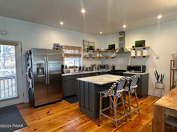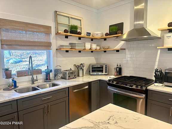 You will fall in love with this stunning home in absolute mint condition. Every corner of this home boasts impeccable custom finishes, from the wide plank wood floors that flow throughout, to the gorgeous quartz countertops, the wood 9' ceiling with lots of recessed lighting and the barn doors which add character to each room. The open concept layout is perfect for entertaining. Enjoy the fireplace this winter which adds warmth along with the sun streaming through the large windows which makes this home bright and cheery. This inviting property is perfectly situated on a corner lot that offers privacy and features a covered porch ideal for relaxing with morning coffee. A spacious deck offers a serene spot for outdoor dining or evening relaxation. The full basement is great for ample storage and could be finished off already with an egress window. The landscaping has been done for you including a sidewalk with pavers and a paved driveway. The shed is great for all your outdoor equipment. This homes meticulous craftsmanship, combined with tasteful contemporary design, makes it a move-in ready masterpiece ready for its next lucky owners. The nearby community lake provides and idyllic setting for fishing, kayaking or simply relaxing by the shore to enjoy the peaceful view. Within the community you also have a pool, ballfield, basketball courts and a playground. Great commuter location and close to hiking trails and waterfalls.