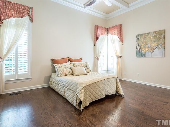 Impeccable and charming home in a highly desirable Cary neighborhood. First floor includes beautiful hardwood floors, stacked stone fireplace and vaulted ceiling in family room, and iron rails leading to 2nd floor. Sought after 1st floor master with coffered ceiling and updated master bath-includes heated floors and custom closet. Updated kitchen with granite, SS Appl. Plantation shutters throughout home. Fenced yard. 4th BR could be bonus or BR. Too many updates to mention--move in ready! No HOA Fees!