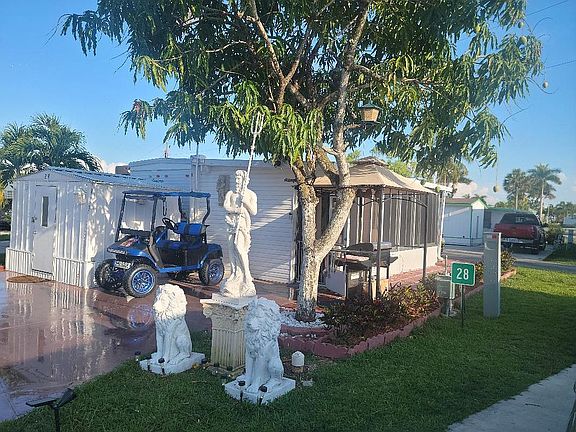 1/1 mobile home, kitchen and bathroom upgraded with new vanities counter tops faucets, 12 x 24 tiled lanai , parking for two cars and two golf cards,outside grill, shed with washer/dryer, side by side fridge/freezer, comes furnished with nice Mango tree and free WIFI, within 5 minutes to Publix, Lowes, Wallmart, Texas Roadhouse, etc, lot rent is $878 and electric +H2o about $70, unit is located at Marco Naples Rv park , Google it on Sun outdoors to see the amenities, the price is $34000