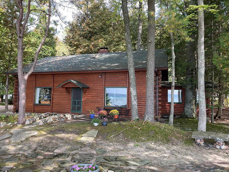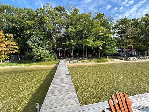 Classic Full Log Cottage with 75 feet of sandy Higgins Lake frontage. Beautifully wooded lot in great location on the north shore, enjoy miles of hiking, biking and cross country skiing trails just a few minutes from your door. 4 large bedrooms, 1.5 baths, spacious living area with vaulted ceiling, hardwood floors throughout, gorgeous natural stone fireplace in living room and bedroom. Very well maintained cottage with newer well and septic systems. The garage features a second level that can be used as a game room or bunk room.