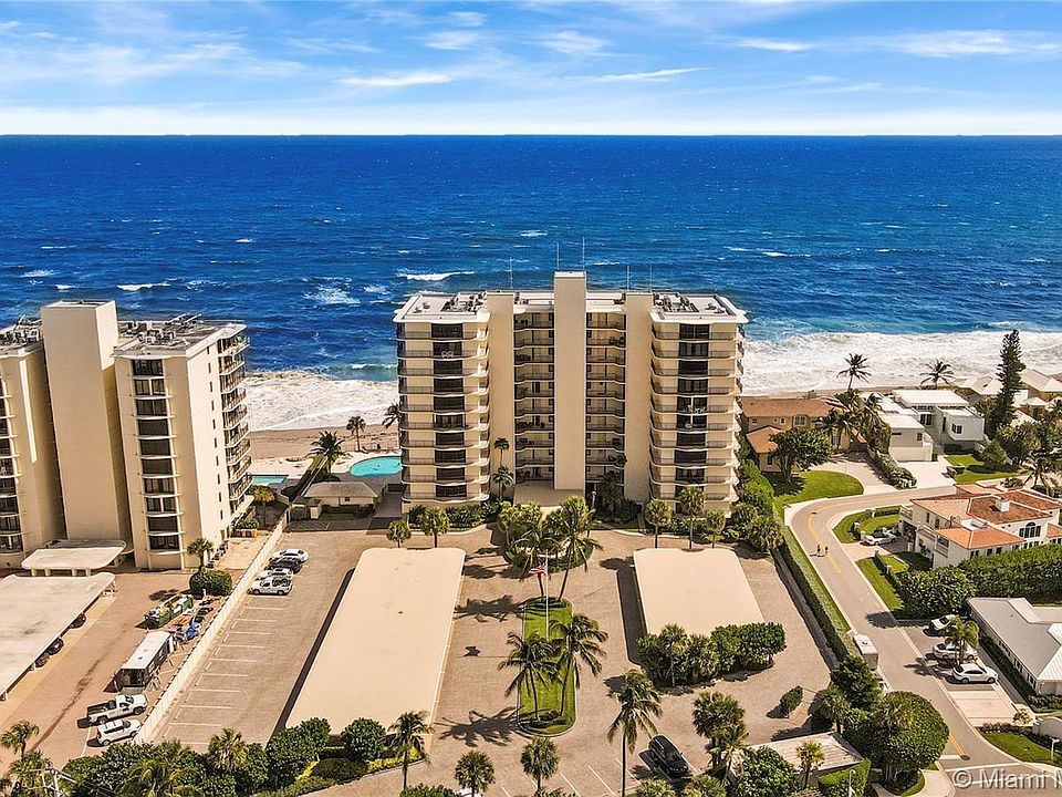 Fantastic Direct Ocean Front South End Unit features a Full Wrap Around Balcony with access from every living area. These End Units Rarely become available in 100 Beach Rd on Jupiter Island. This gorgeous 3 bedroom 2 bath condo boosts over 1800 Square Feet of Living plus the extensive outdoor balcony living areas. Nicely updated and decorated offering a turn key opportunity. Jupiter Island living at its best with Covered Parking, Secured and Elegant Lobby, Completely Redone Ocean Front Pool with Fitness Center adjacent. Large Climate Controlled Storage Room for beach accessories etc.