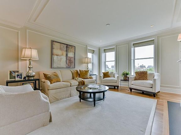 100 Beacon promises luxurious city living with 24-hour concierge steps from The Esplanade and The Boston Public Garden. Renovated to the highest standards, this full-floor residence boasts over four thousand square feet with direct elevator access and stunning Charles River, Public Garden and City views. The spacious floor plan effortlessly incorporates gracious entertaining rooms including formal living and dining rooms separated by a double-sided gas fireplace, the high-end eat-in kitchen, handsome wood paneled library, den/media room and wet bar. The spacious master suite features corner exposure, two custom walk-in dressing rooms and a sumptuous, six-piece limestone bath. Three additional family or guest bedrooms all have en-suite baths. Exceptional storage and large laundry room complete this rare offering. Valet garage parking for two cars.