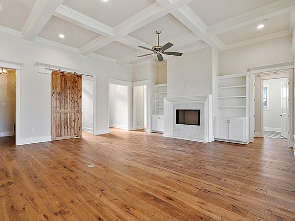 Attractive floorplan in our popular Heron Lake Neighborhood features a wood-burning fireplace flanked by built-ins and cabinetry in the open living space. A dramatic coffered ceiling and lots of natural light are just some of the detailed special touches designed by this builder. The cheerful kitchen offers an oversized t-shaped island with contrasting paint color, complete with a built-in dishwasher. The gorgeous kitchen cabinetry and countertops have a custom backsplash which mimics shiplap trim. Faux hardwood tile flooring is extensive throughout the living spaces and master bedroom. The private master bath is designed with dual vanities, a stand-alone tub and custom master shower. This new home for sale also has a separate, private office, laundry room and mudroom. The family room, dining area, kitchen, master bedroom and covered patio offer water views. Don't Miss This New Home for Sale ? It Won't Last Long!