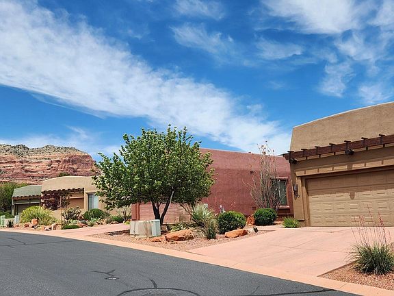 This Sedona home in Firecliff offers STUNNING RED ROCK VIEWS from the back patio & Bell Rock views from the front yard! Inside, discover elegant Travertine Stone flooring, granite counter tops, 10' ceilings & alder wood cabinets. Great Room boasts a gas fireplace that will heat the entire room. Step outside to enjoy patios surrounded by wonderful landscaping including colorful rose bushes and an Apricot tree! HOA fees covers landscaping making this a perfect low maintenance home. Enjoy resort style living with a gated, heated community pool complete with hot tub, cabana, BBQ and bathhouse. 3 golf courses, a yoga studio, tennis and pickleball courts are all within a mere 2 miles, along with the Bell Rock trailhead which is the gateway to the extensive Red Rock hiking/biking system.
