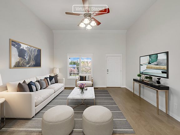 Welcome to this charming property that boasts a cozy fireplace perfect for chilly evenings. Step inside to discover a modern natural color palette throughout, complemented by a nice backsplash in the kitchen. With additional rooms for flexible living space, you'll have plenty of options to customize to your needs. The primary bathroom features double sinks and good under sink storage. Outside, enjoy a fenced backyard with a sitting area - ideal for outdoor entertaining. Fresh interior paint completes this move-in ready home. Don't miss out on this wonderful opportunity! This home has been virtually staged to illustrate its potential.