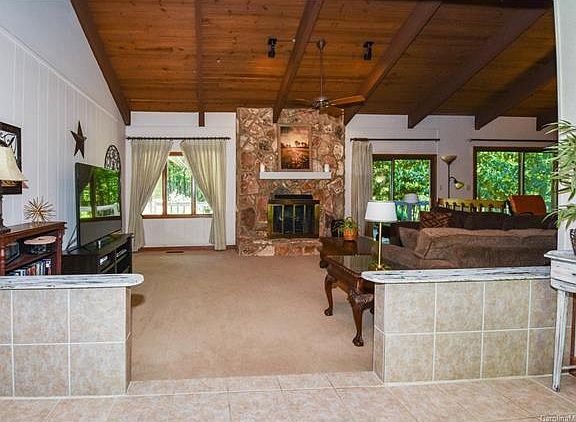 Secluded custom built home of cedar and stone on heavily wooded 3 acre lot. Living room & dining room have vaulted cedar ceiling and dramatic fieldstone fireplace. Numerous floor to ceiling windows and wrap around deck make observing nature easy. Studio/Workshop of matching cedar for the hobbyist. Home has many updates including architectural shingle roof. Horses allowed in this charming community. 1 yr warranty provided. BACK ON MARKET - after tenant has moved out.