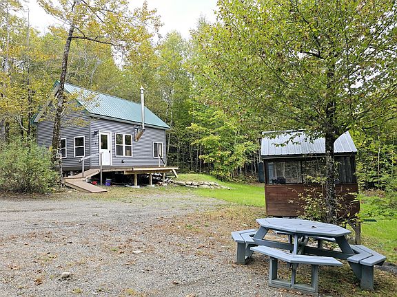 A delightful chalet style home with an exceptional view. This charming property feels bigger than the square footage sounds and offers year-round living due to a 2024 full septic system and private 2023 drilled well. The property features wooden accents throughout the home, along with cathedral ceilings, private deck accessed from a balcony bedroom, a screen house, parking for numerous vehicles and a decked area overlooking rolling hills and a glimpse of Mount Katahdin on a good day. A portion of the 2.5 surveyed acres is still wooded giving a chance for some localized hunting. For the sports enthusiasts there are ATV and snowmobile trails close by as well as public boat launches. If you're looking for reasonably priced home, or want a private getaway in a pictureque Maine setting, then look no further.