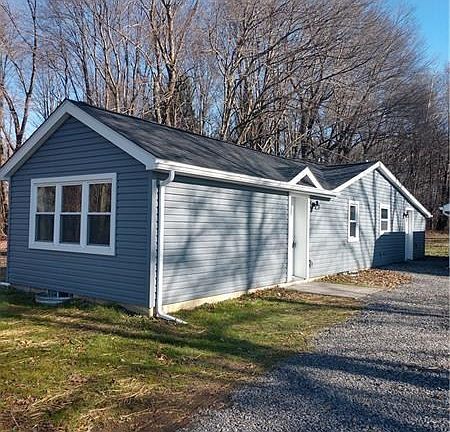 Totally remodeled professionally from top to bottom. This ranch home sits on 4 acres outside of town with a nice sized garage, yard and lots of woods to play in. Exteriorly offers brand new siding, soffit, fascia, gutters, roof and lighting on the house and garage. The garage also has a brand new garage door with electric opener. Inside the entire home offers new insulation throughout up to today's new codes, framing, drywall, lighting, PEX plumbing, electric, HVAC, and flooring. Upon entering you will notice the open concept living which has a living room dining room combo, recessed lighting, Granite counters and stainless steel appliances. The kitchen has high quality Kraftmaid cabinets and hardware. Laundry is located on the main level off the kitchen. The main bathroom is large in size, has storage, tile flooring ,shower stall, and a double bowl vanity.