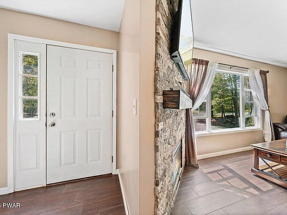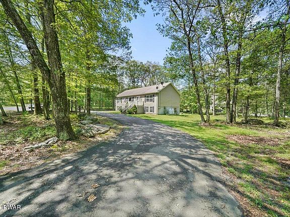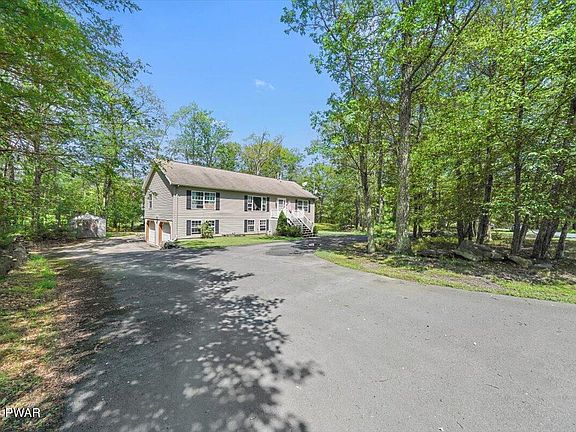 1 Year Home Warranty Included! Discover this charming three-bedroom, two-and-a-half-bath raised ranch that sits on over an acre of land in the serene Pocono Mountain Water Forest. This home is ideally located close to the clubhouse, pool and lake, offering easy access to recreational amenities. Perfect for commuters, it's not far from the New York and New Jersey borders. Inside you will find an open and bright Living Room with large windows, a cozy electric fireplace and new flooring. The modern Kitchen has SS appliances and lots of cabinet space. A separate dining area is conveniently located off the Kitchen. The Primary Bedroom is spacious and has an en-suite with a large jetted-tub and stand-up shower. There are two additional bedrooms and another full bathroom to finish off the main floor. The heated basement with walk-out access and a half bath is a blank canvas for extra living space, a home gym or office. Other features include a two-car garage, a large Trex back deck perfect for entertaining, a walk-up attic for extra storage and leaf filters on the gutters with a transferable warranty. Don't miss out on this fantastic opportunity to own a beautiful home in a prime location at a great price. Call for a showing today.