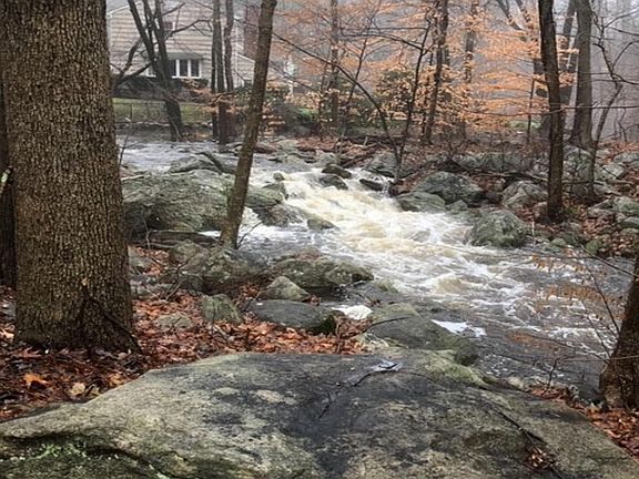 4BR, 2.5B Country Colonial, w deck+screened porch, enjoys views & sounds of rushing brook that runs behind it. It boasts NEW 30-YR ROOF, NEWLY PAINTED EXTERIOR & 2-NEW BTHS+great layout, lg rms, hdwd on both levels. Welcoming entry foyer w powder rm+deep closet has perfect fung shui! Lg LR w graceful bow window & pretty DR w picture window & chair rail trim are perfect for entertaining. Vltd/beamed family rm has brick flr-to-ceiling fpl+new sliding door to screened porch. Spacious EIK has loads of storage & delightful dining area wrapped in windows for property views. Upstairs there are 3-roomy BRs, new hall bath w double sinks + generous-sized Master w dressing rm area that leads to new en suite. Fully htd walkout LL partly fin w playrm w sliders. Near shops & Pkwy but your pvt retreat